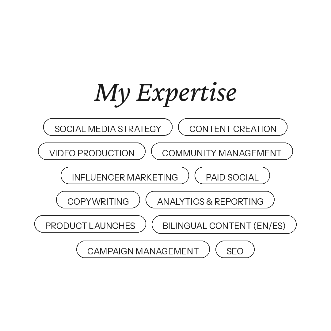 I'm Alma, a bilingual social media strategist with over 9 years of experience building brands, growing communities, and making content people actually want to engage with. I've worked both in-house and at the agency level, giving me a rare dual perspective. I understand the pace and politics of internal teams as well as the multi-client demands of agency life.